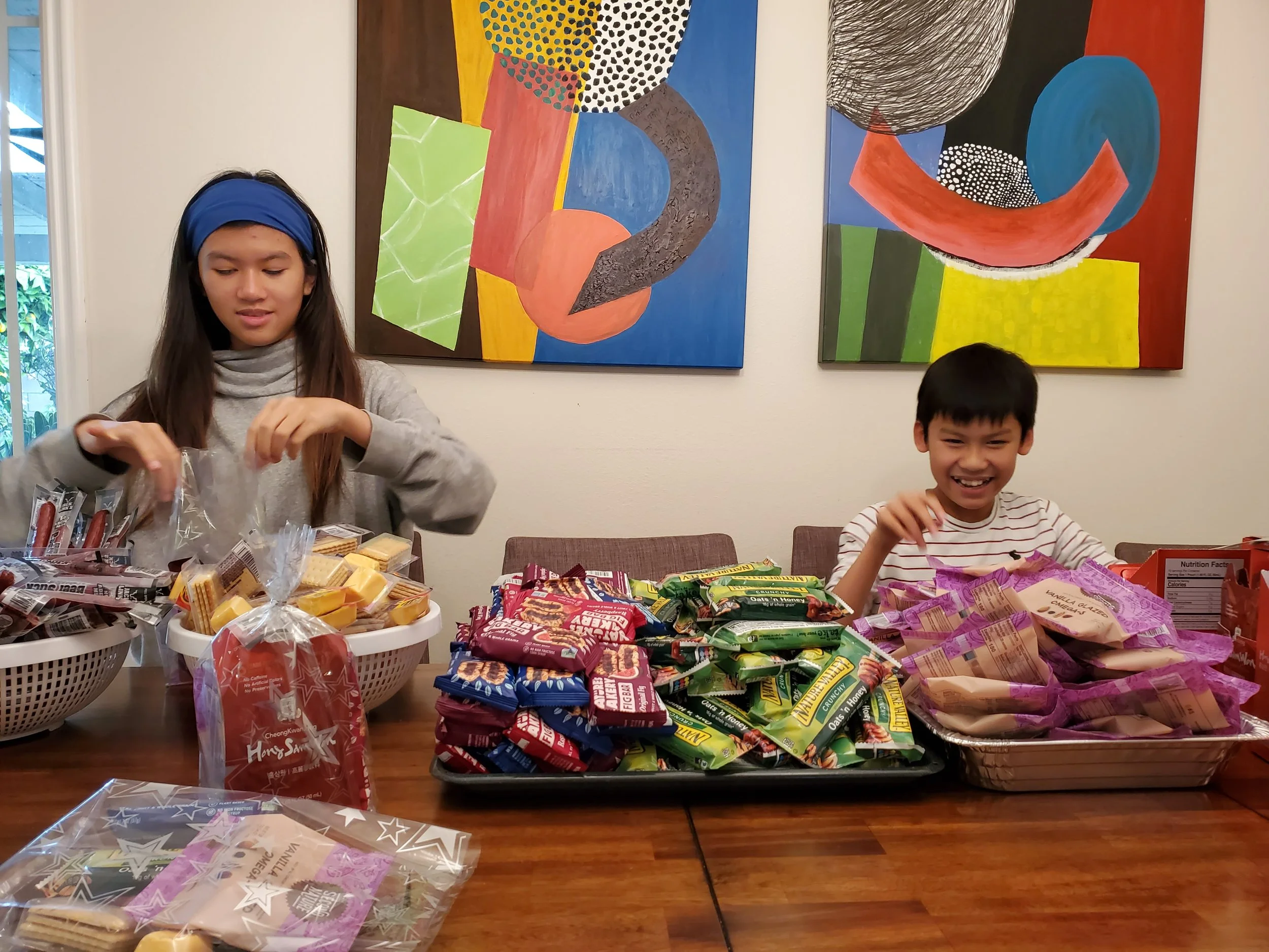 Due to the mandatory lockdown in May 2020, we took our fundraising effort to the Internet, and did our purchases of treats online. Following the safety precautions such as cleaning the packaging goods, and sanitizing our hands and working table, we ensured the cleanliness of assembling 300 goodie bags, with each consisted of various healthy snacks such as fruit bars, nuts, and ginseng drinks.