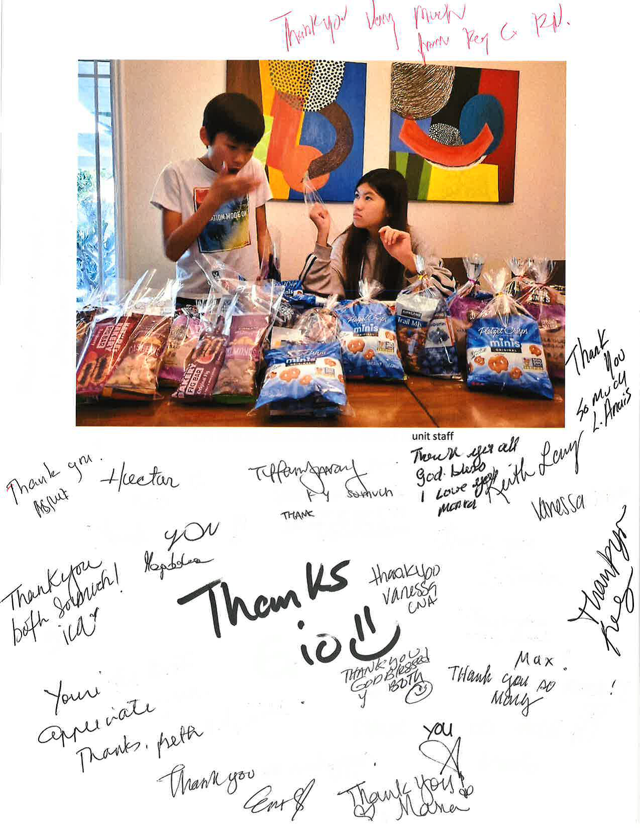 Along with our goodie bags, we handwrote thank-you cards to express our utmost appreciation to all staff during this time of crisis.